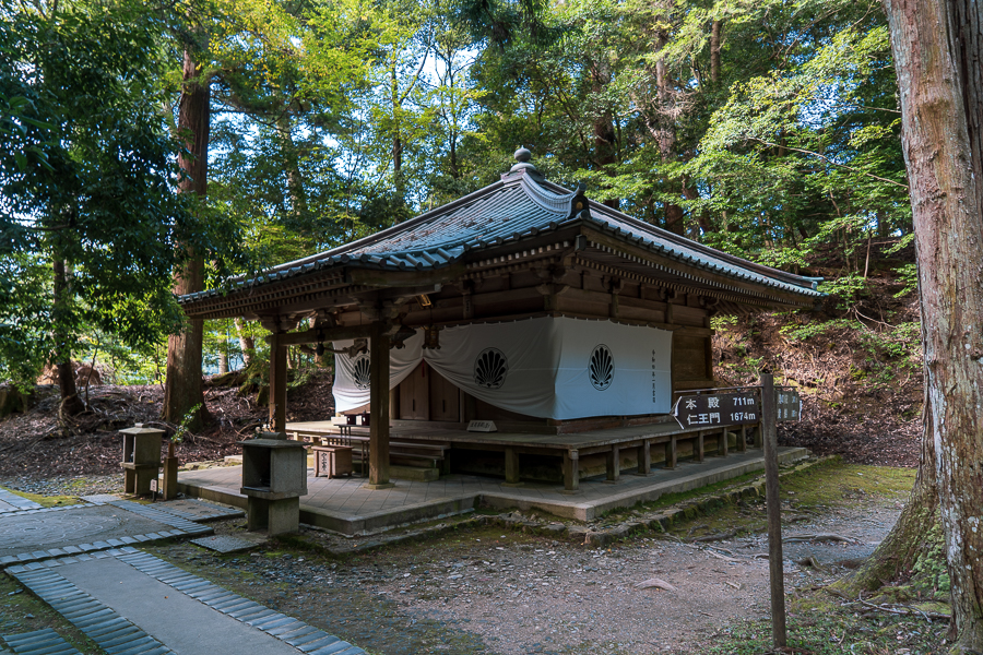 九十九折参道と言われる参道を登っていくと現れる由岐神社。
