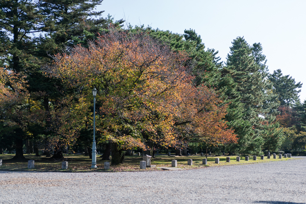 例年京都の紅葉は、11月後半に見頃を向かえる観光スポットが多く、京都御苑の紅葉の見頃ももう少し先かな~という印象でしたが、徐々に色付きが増してきています。